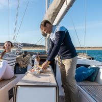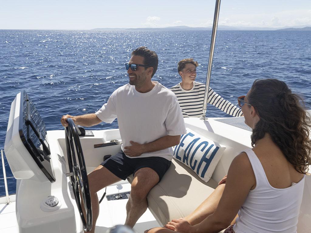 Unbesorgt und sicher überlässt du das Steuer dem Skipper.